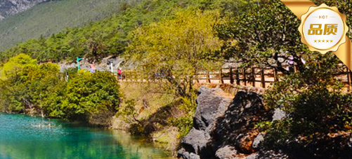游览“小九寨”【蓝月谷】(不含电瓶车60元/人)。谷内的白水河晴天时河水是蔚蓝的,阴雨天时是白色的,流淌在玉龙雪山峡谷的白水河,宛若人间仙境。
